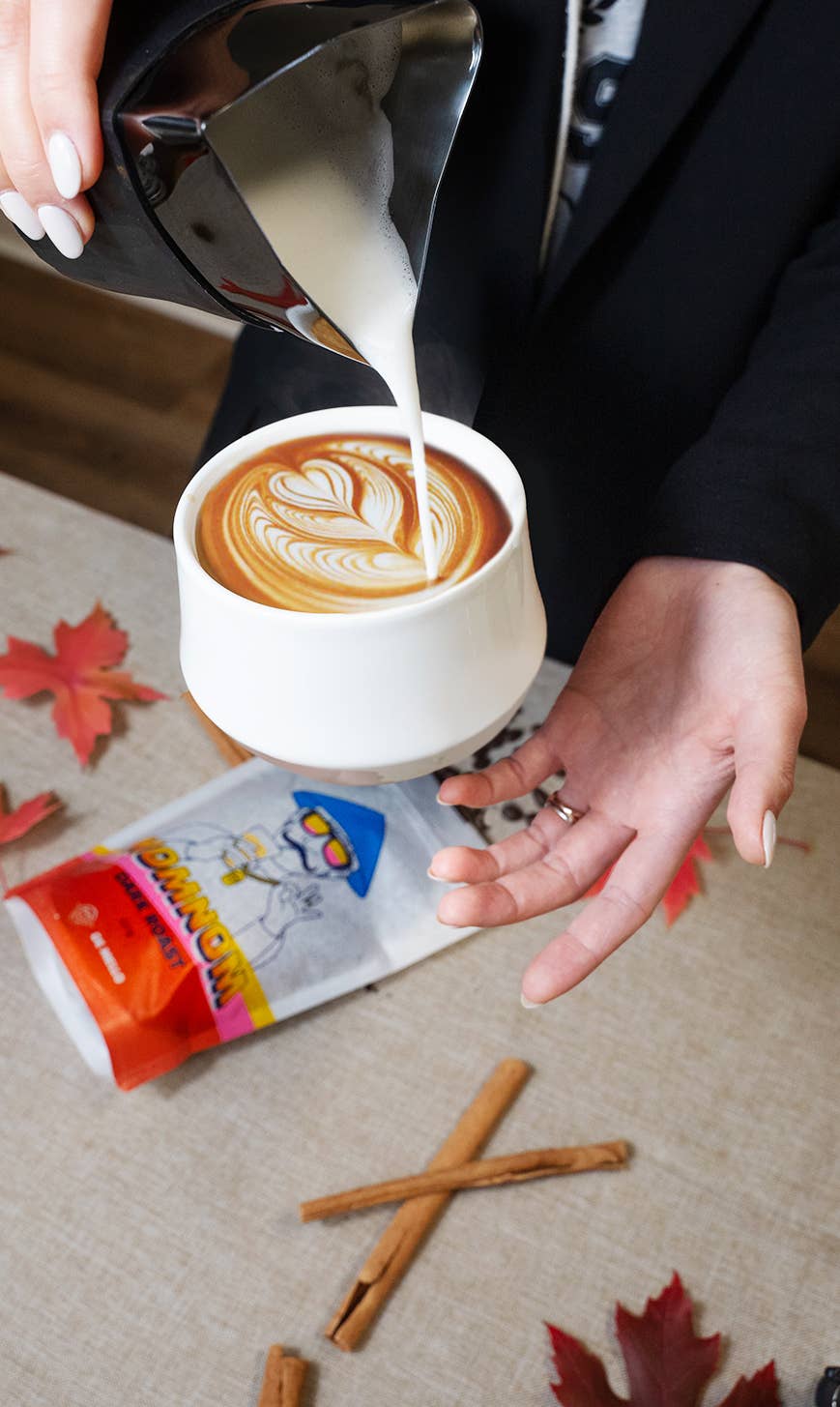 The flavour profile leans heavily into chocolate tones, layered with subtle sweetness that comes alive when combined with milk. In fact, this is where the Nom Nom Dark Roast truly excels: it was roasted to shine in milk-based drinks, whether a flat white, latte, or cappuccino. The creaminess of the milk enhances the natural cocoa and nutty notes of the beans, creating a harmonious blend that is both comforting and indulgent.