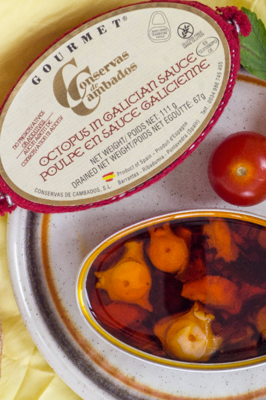 The Octopus is one of Galicia's star cephalopods as a typical but prestigious staple of cuisine. The manufacturing process is all done by hand, and seafood sauce is added in the final stages to enhance its flavor. Great care and slow fire make this a delicacy.