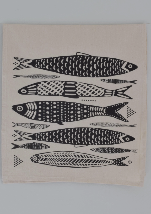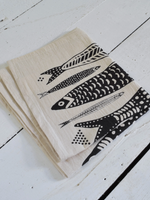 Sardines Tea Towel in Black - Organic Cotton - Fish Print