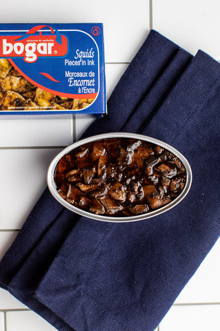 Tender pieces of squid in their own ink, hand-packed and canned for you to enjoy straight from the can.