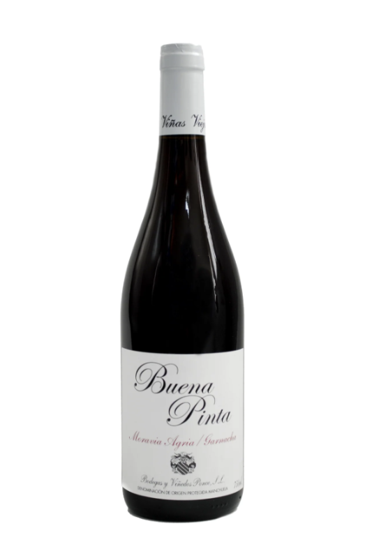 Buena Pinta is a striking red from Bodegas Ponce, crafted in the Manchuela region of Spain. This wine is an adventurous blend of Garnacha and the rare, native Moravia Agria, a grape cherished for its high acidity and low tannins. Buena Pinta pours a lively ruby, with expressive aromas of fresh red berries, wild herbs, and subtle floral notes. The palate is refreshing and medium-bodied, balancing ripe fruit with zesty acidity and minerality. Unfiltered and organically produced, it captures the vibrancy of Manchuela’s terroir with an artisanal, minimalist approach. This wine pairs beautifully with charcuterie, roasted vegetables, and lightly spiced dishes, offering a fresh perspective on Spanish reds.