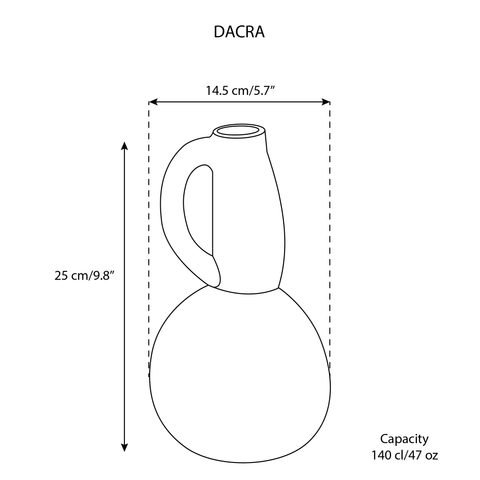 The beauty of handmade craftsmanship is that no two carafes are exactly alike — subtle variations in shape and glaze give each vessel its own character, a reminder of the artisan’s hand. Functional, versatile, and artful, the Dadasi Stoneware Carafe & Vase is more than an object of daily use — it’s a piece of design you’ll treasure in any room of your home.