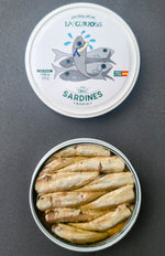 Unit price / perLa Curiosa Sardines in Olive Oil (Sardinas en Aceite de Oliva) are a beautiful expression of Galician tradition, elevated through a modern lens. Sourced from the cold Atlantic waters off the coast of Galicia, these sardines are selected for their freshness, size, and flavour—only the best catch makes it into each tin. Once landed, they’re cleaned by hand, lightly steamed, and carefully packed in high-quality Spanish olive oil to preserve their delicate texture and enhance their natural richness.