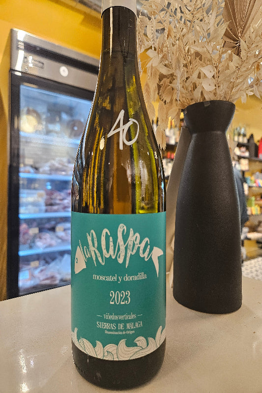 Raspa is a coastal white wine unlike any other—a sunny, saline blend of Moscatel and Doradilla from Málaga, Spain. It’s a bottle that transports you straight to the Mediterranean, where breezes off the sea mingle with limestone-rich soils to create a wine that’s both aromatic and bone-dry.