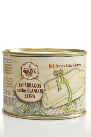 Rosara’s Espárragos Blancos Extra are some of the most prized conservas from Navarra—thick, tender, and silky white asparagus spears that are hand-harvested and peeled at peak freshness. Grown in the fertile soils near the Ebro River, these asparagus are IGP-certified and packed in brine that preserves their natural sweetness and delicate texture. Unlike most jarred versions, Rosara’s spears are luxuriously thick, melt-in-your-mouth soft, and perfect served cold or at room temperature.