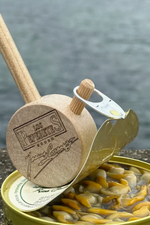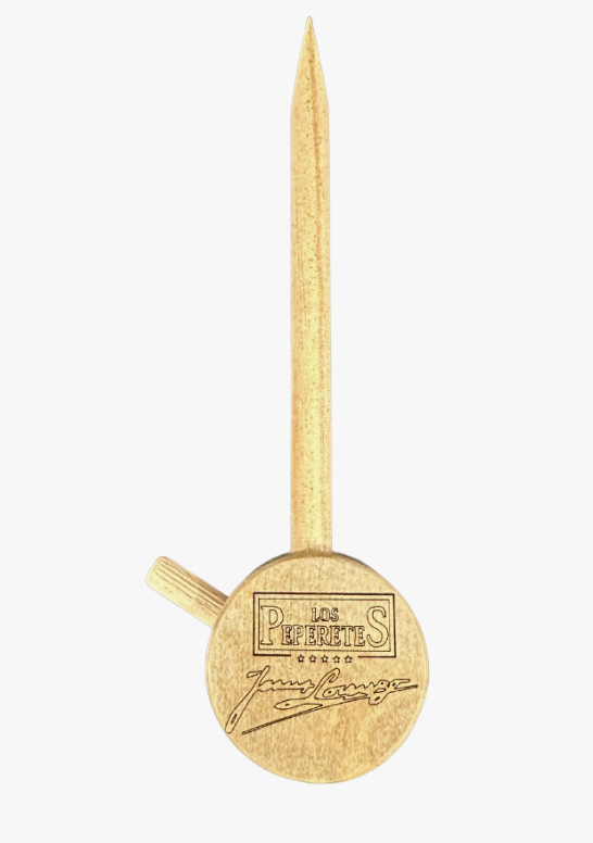 Los Peperetes can opener handcrafted with recycled wood.