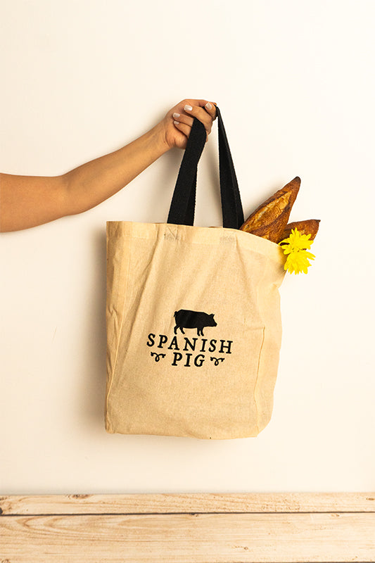 Embrace Spanish charm with our stylish Spanish Pig tote bag—celebrate culinary heritage and eco-consciousness. Showcasing the iconic Spanish pig, it's a fashionable and practical choice for every day, infusing flair and functionality effortlessly.